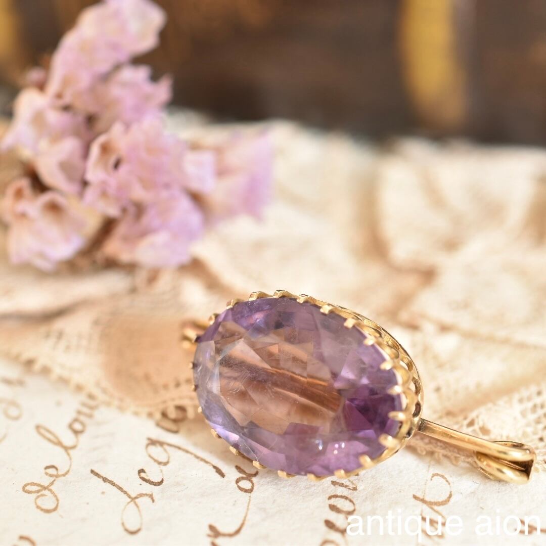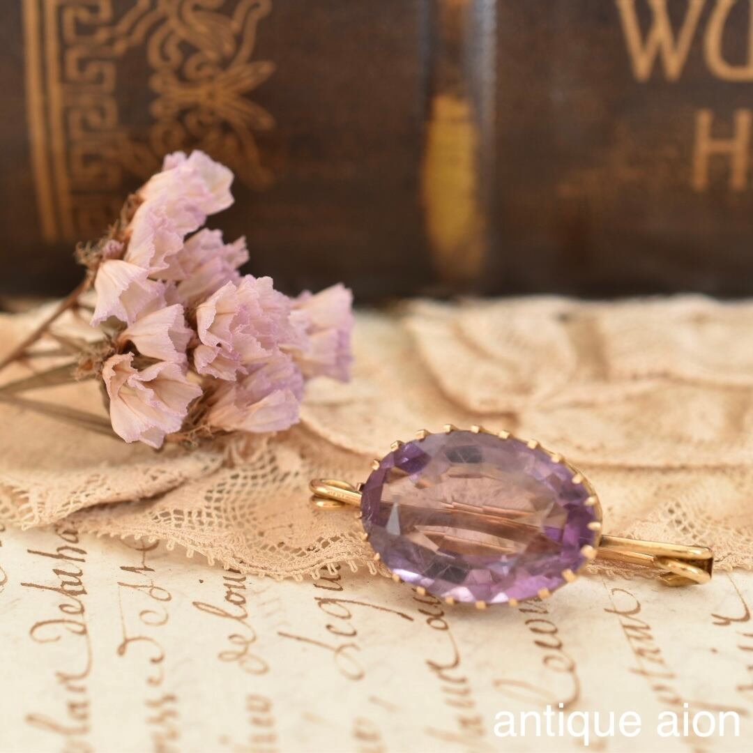 英国アンティーク 20世紀初頭頃 9ctゴールド 天然アメジストのオーバルブローチ
