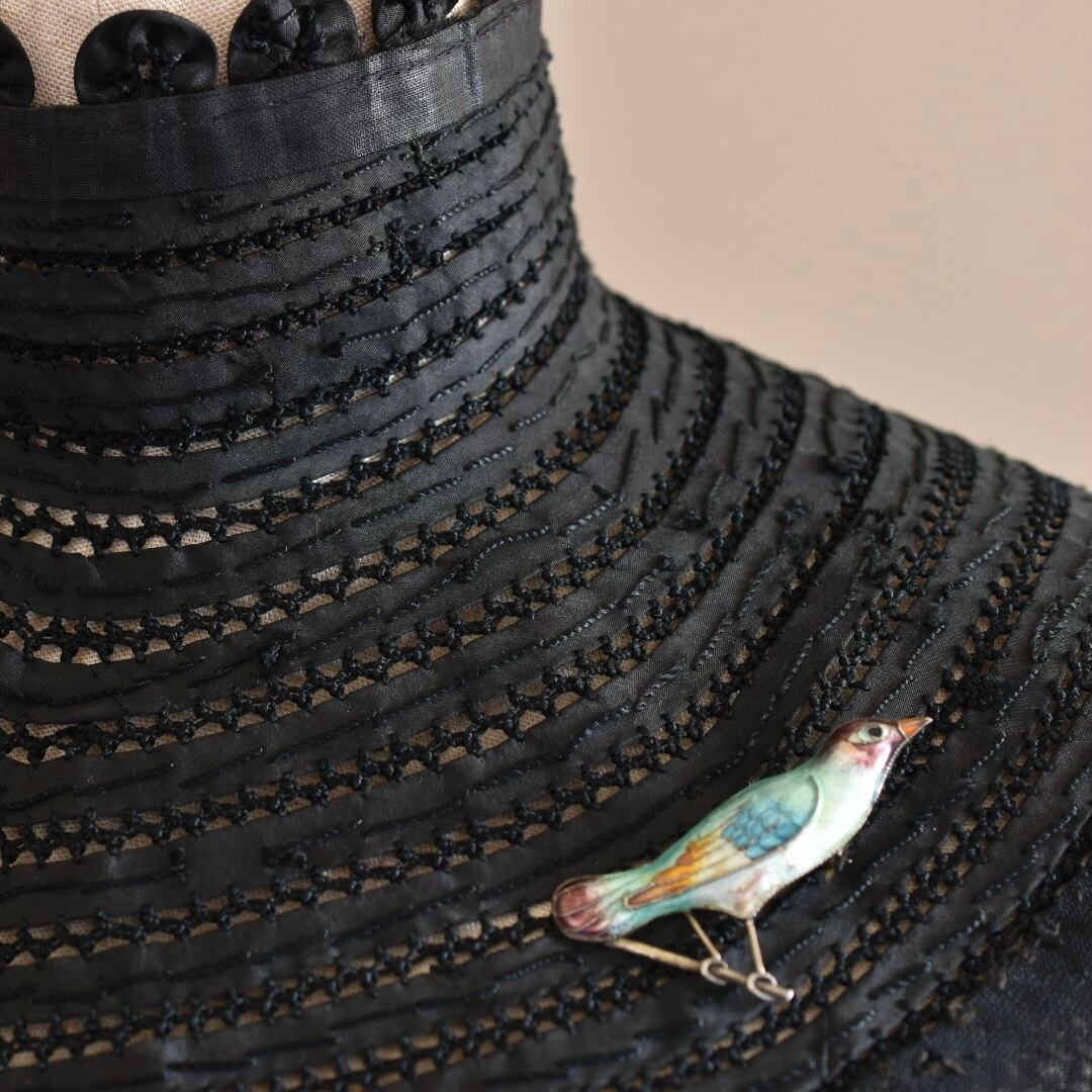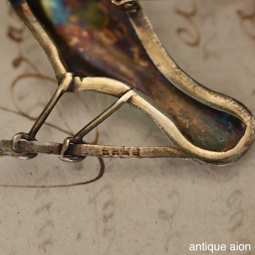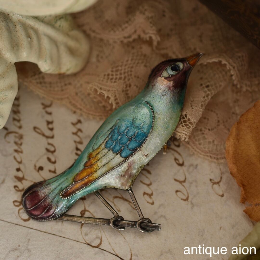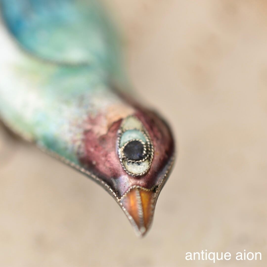 英国ヴィンテージ シルバーと多彩エナメル 鳥のブローチ