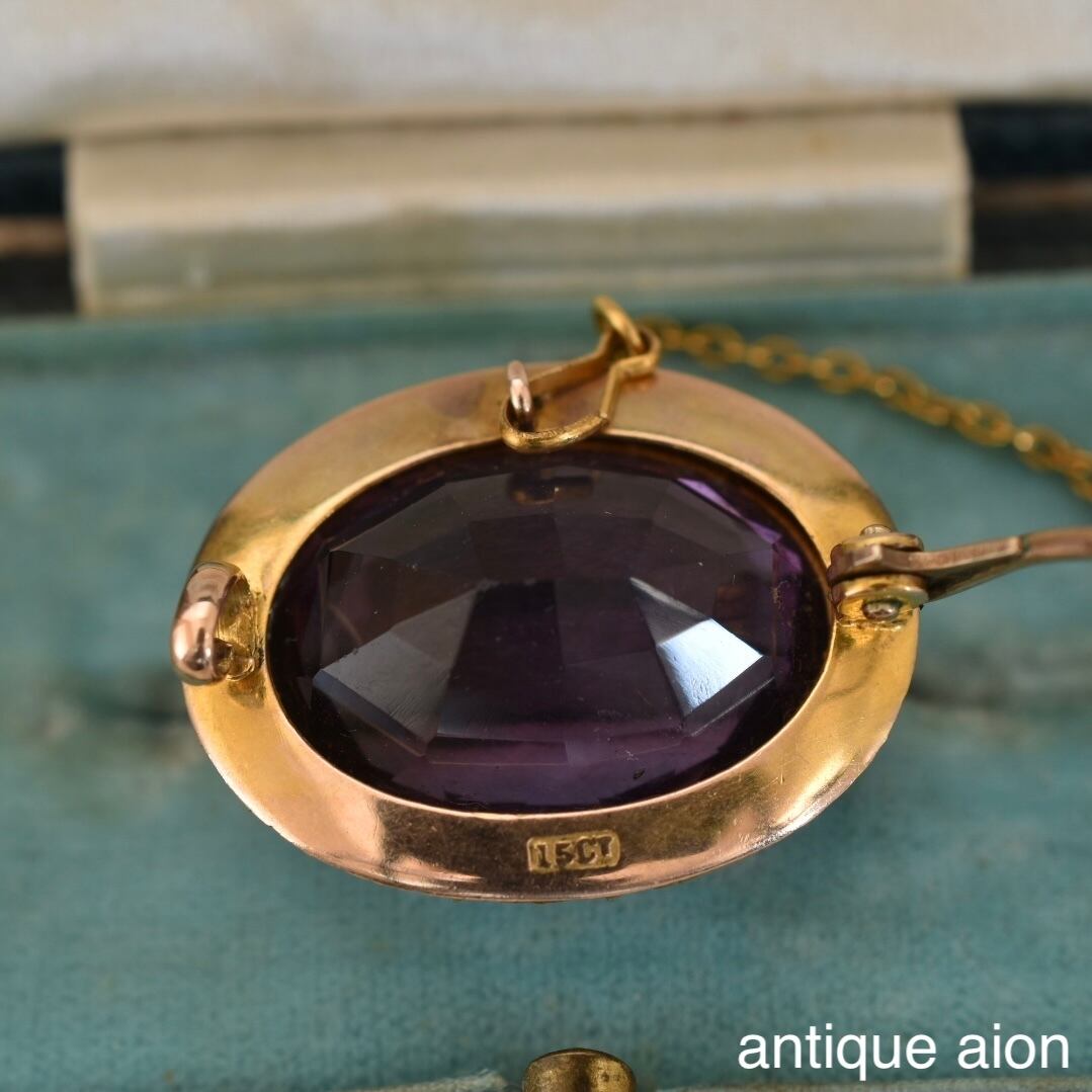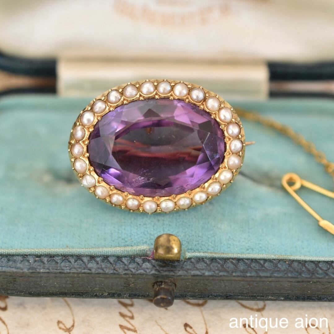 英国アンティーク 19世紀後期 ヴィクトリア朝時代 15ctゴールド 天然アメジストと天然パールのオーバルブローチ