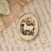 彫刻部分には優雅な馬の姿が描かれ、背景には透かし模様の木々がデザインされています。